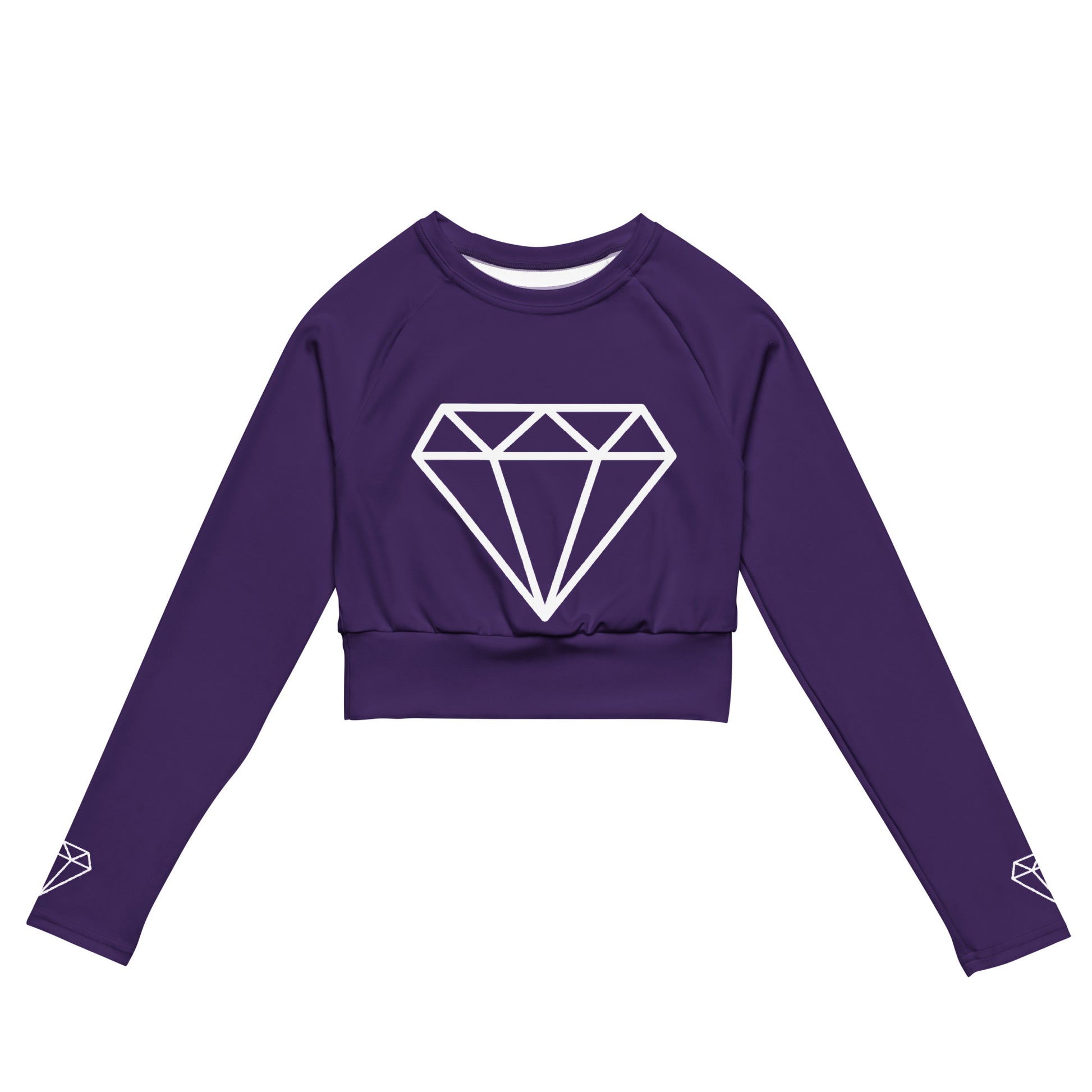 This long-sleeve crop top is made of recycled polyester and elastane, making it an eco-friendly choice for swimming, sports, or athleisure outfits. The crop top has a tear-away care label and a wide, double-layered waistline band for a comfortable fit.